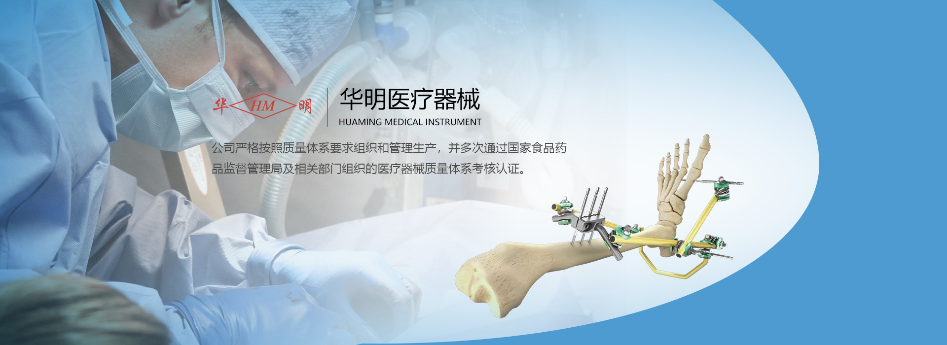 張家港華明醫(yī)療器械有限公司是一家集研發(fā)、生產(chǎn)、營銷于一體的專業(yè)的骨科醫(yī)療器械企業(yè).主要生產(chǎn)骨科外固定支架和骨牽引針等“華明”系列產(chǎn)品。公司嚴(yán)格按照質(zhì)量體系要求組織和管理生產(chǎn),并多次通過國家食品藥品監(jiān)督管理局及相關(guān)部門組織的醫(yī)療器械質(zhì)量體系考核認(rèn)證。